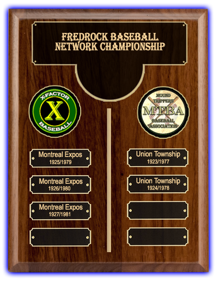 Take the playoff teams from X Factor Baseball League and the playoff teams from Mound Trippers Baseball Association - Rank them by Winning Percentage and put them in a custom style tournament ... and what do you have... The FBN Champsionship.... For the 28/82 Season we will be adding RABA 1911 so it will be the 11/28/82 Championship